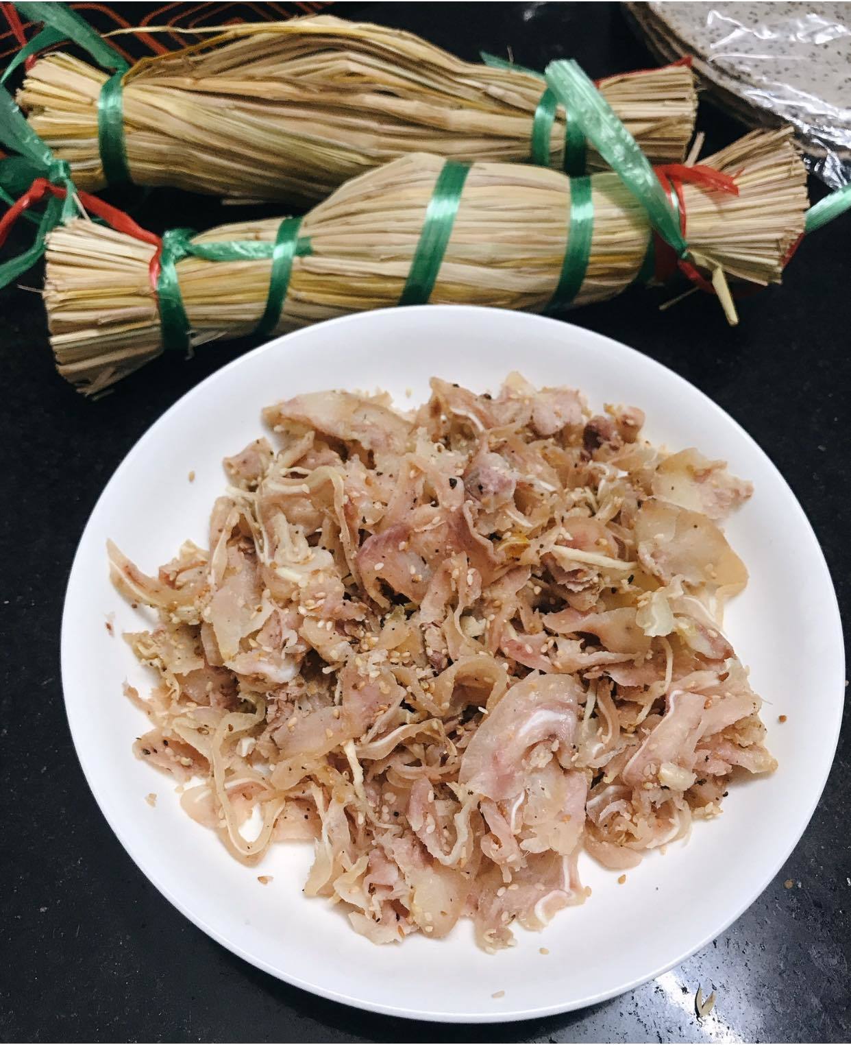 椰奶米纸仅供烤制后食用,也可搭配其他菜肴。品尝时,你能感受到椰丝和融入米纸中的椰奶的肥美与香气,以及红葱头、炒芝麻和黑胡椒特有的浓郁香味。