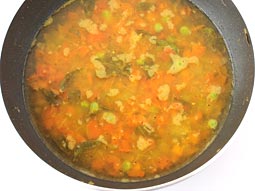 加入2汤匙水,盖上盖子,用小火将蔬菜煮至变软,大约需要3-4分钟。