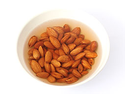 将杏仁放入碗中,倒入1杯开水。