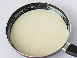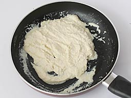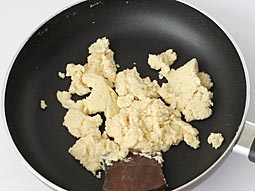 在平底不粘锅或炒锅中加热1汤匙酥油。加入杏仁糊。
