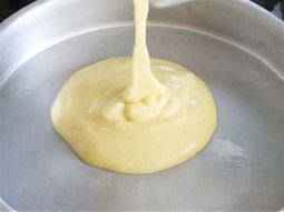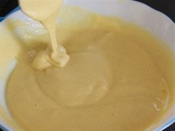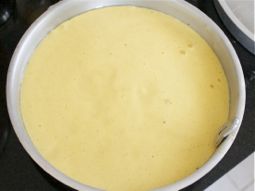 然后,立即将面糊倒入已润滑的盘子中,面糊厚度约半英寸。