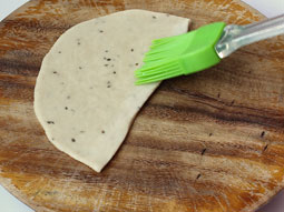 用刷子或手指沾水,将切开的直边边缘润湿(直接在直边上 – 如图所示)。