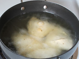 在一个深锅里用中火加热油炸用油。当油达到中温时,放入 2-3 个萨摩萨(根据锅的大小决定数量),并将火调小。