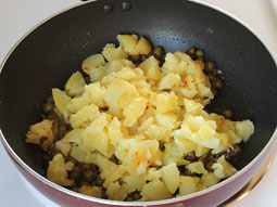 注: 您可以使用新鲜青豌豆、冷冻豌豆或干豌豆,根据实际情况选择。如果您使用冷冻豌豆,则无需煮熟。如果您使用新鲜青豌豆,则与土豆一起煮熟。如果您使用干豌豆,则需在水中浸泡 5-6 小时,然后与土豆一起煮熟。