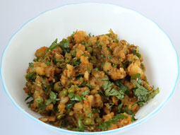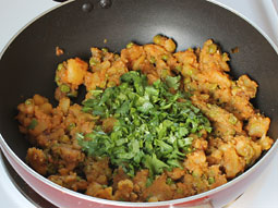 将它们充分混合,再煮 2-3 分钟。加入香菜叶和薄荷叶,搅拌均匀。